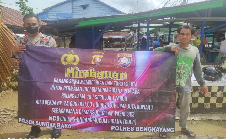 Polsek Sungai Raya – Polres Bengkayang – Polda Kalbar Pada hari ini Minggu tanggal 16 Oktober 2022, sekira jam 09.00 Wiba, Personil Polsek Sungai Raya melaksanakan kegiatan himbauan kepada masyarakat tentang perjudian maupun tindak pidana lainnya. Pada kegiatan tersebut Personil Polsek Sungai Raya melaksanakan kegiatan dengan mengunakan Benner dengan isinya adalah, Himbauan’ Barang siapa memberikan..