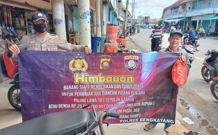 Polsek Sungai Raya – Polres Bengkayang – Polda Kalbar Pada hari ini Senin tanggal 03 Oktober 2022, sekira jam 09.00 Wiba, Personil Polsek Sungai Raya melaksanakan kegiatan himbauan kepada masyarakat tentang perjudian maupun tindak pidana lainnya. Pada kegiatan tersebut Personil Polsek Sungai Raya melaksanakan kegiatan dengan mengunakan Benner dengan isinya adalah, Himbauan’ Barang siapa memberikan..