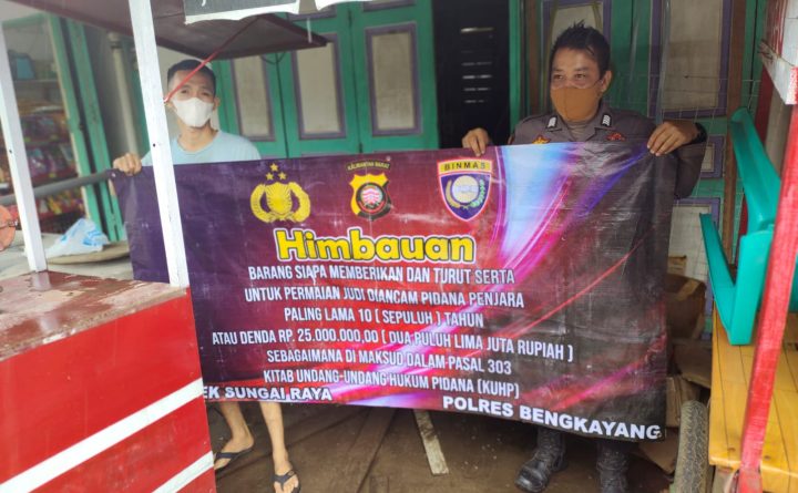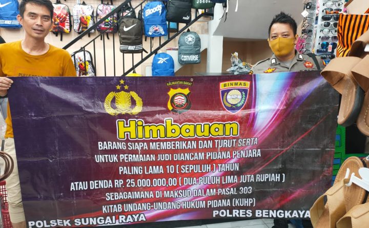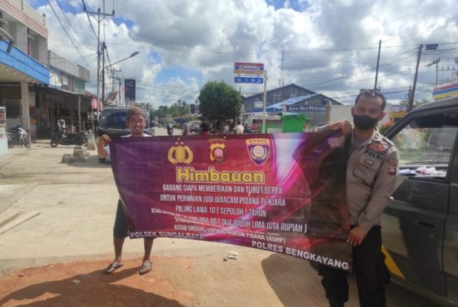 Polsek Sungai Raya – Polres Bengkayang – Polda Kalbar Pada hari ini Minggu tanggal 02 Oktober 2022, sekira jam 09.00 Wiba, Personil Polsek Sungai Raya melaksanakan kegiatan himbauan kepada masyarakat tentang perjudian maupun tindak pidana lainnya. Pada kegiatan tersebut Personil Polsek Sungai Raya melaksanakan kegiatan dengan mengunakan Benner dengan isinya adalah, Himbauan’ Barang siapa memberikan..