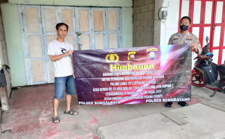 Polsek Sungai Raya – Polres Bengkayang – Polda Kalbar Pada hari ini Senin tanggal 05 September 2022, sekira jam 09.00 Wiba, Personil Polsek Sungai Raya melaksanakan kegiatan himbauan kepada masyarakat tentang perjudian maupun tindak pidana lainnya. Pada kegiatan tersebut Personil Polsek Sungai Raya melaksanakan kegiatan dengan mengunakan Benner dengan isinya adalah, Himbauan’ Barang siapa memberikan..