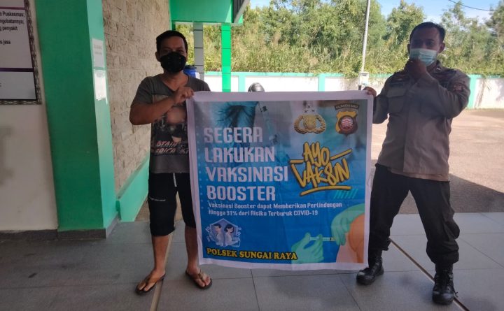 Polsek Sungai Raya – Polres Bengkayang – Polda Kalbar Pada hari ini Jum’at tanggal 03 September 2022 sekira jam 09.00 Wiba, Personil Polsek Sungai Raya melaksanakan Kegiatan himbauan Vaksin Boster dengan Masyarakat. Kegiatan tersebut di laksanakan oleh Personil Polsek Sungai Raya secara rutin dan juga untuk menghimbau mengajak agar masyarakat ikut vaksin boster di Puskesmas..