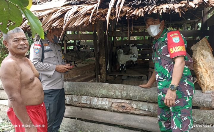 Polsek Sungai Raya – Polres Bengkayang – Polda Kalbar Kapolsek Sungai Raya IPDA ARIJITO TRI SUSANTO HUTAGAOL, S.H., mengatakan anggota Polsek Sungai Raya melaksanakan sambang dan memberikan himbauan ke masyarakat Desa sunga Duri dalam rangka Pencegahan peyebaran penyakit mulut dan kuku (PMK) pada ternak sapi, kambing, (Kamis 04 Agustus 2022) Pemilik hewan ternak yang diberikan..