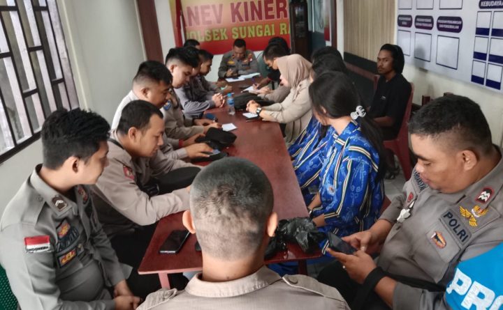 Polsek Sungai Raya – Polres Bengkayang – Polda Kalbar Kegiatan Kapolsek Sungai Raya IPDA ARIJITO TRI SUSANTO HUTAGAOL, S.H., memimpin Anev personil Polsek Sungai Raya, Kamis Tanggal 04 Agustus 2022, jam 09.00 Wiba s/d selesai di Ruang PPKO Polsek Sungai Raya. Pelaksanaan yang terlibat Kapolsek Sungai Raya dan Personil Polsek Sungai Raya, Kapolsek Sungai Raya..