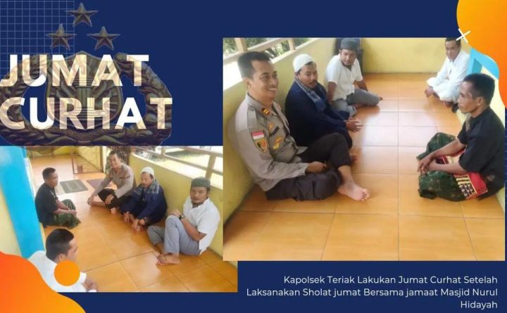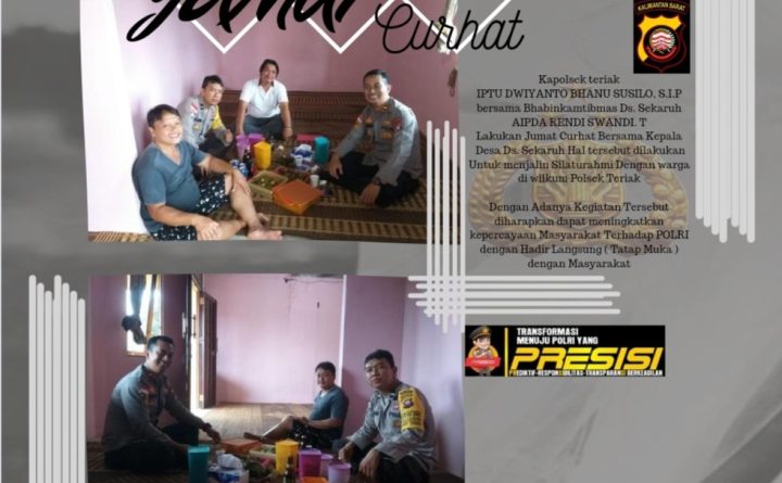 Jumat Curhat merupakan program yang dicanangkan oleh Kapolri dalam upaya Polri untuk mewujudkan wadah bagi masyarakat untuk berinteraksi dengan Pimpinan maupun Anggota Polri di tingkat Polda, Polres, maupun Polsek dalam rangka menyampaikan aduan, kritik, saran dan masukan terkait pelayanan Polisi Menindak lanjuti program Kapolri tersebut, kali ini Polsek Teriak jajaran Polres Bengkayang Polda Kalbar menggelar..