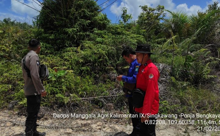 Polres Bengkayang, Polsek Teriak, – Bhabinkamtibmas Desa Puteng Polsek Teriak Briptu Martiq Setelah mendapatkan Laporan Verifikasi Hotspot tim Penelaahan Data Daops Manggala Agni Kalimantan IX/Singkawang, Bersama-sama dengan Tim Manggala Agni melaksanakan pengecekan titik hotspot yang terpantau di Desa Puteng Kec. Teriak, dengan Koordiat N 0.82465, E109.60673 pada hari Selasa (21/02/2023).Kapolsek Teriak Iptu Dwiyanto Bhanu Susilo..
