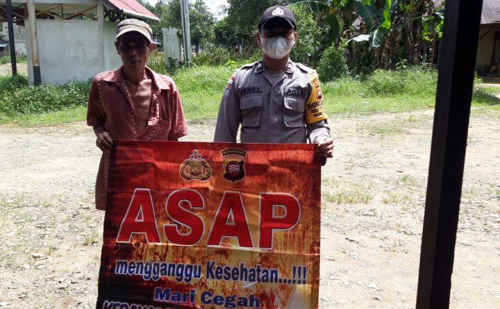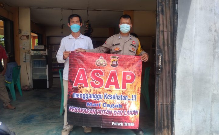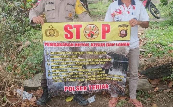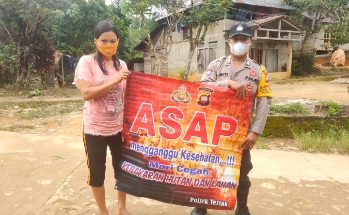 Polres Bengkayang– Polsek Teriak, Anggota Bhabinkamtibmas Polsek Teriak terus melakukan upaya pencegahan terjadinya kebakaran hutan dan lahan (Karhutla) di wilayah Hukum Polsek Teriak. Semua Bhabin bergerak melakukan upaya pre-emtif kepada masyarakat dengan cara memberikan himbauan agar tidak melakukan pembakaran hutan dan lahan.“Upaya mencegah Karhutla masuk dalam giat rutin Anggota Bhabinkamtibmas Polsek Teriak, melalui kegiatan sosialisasi..