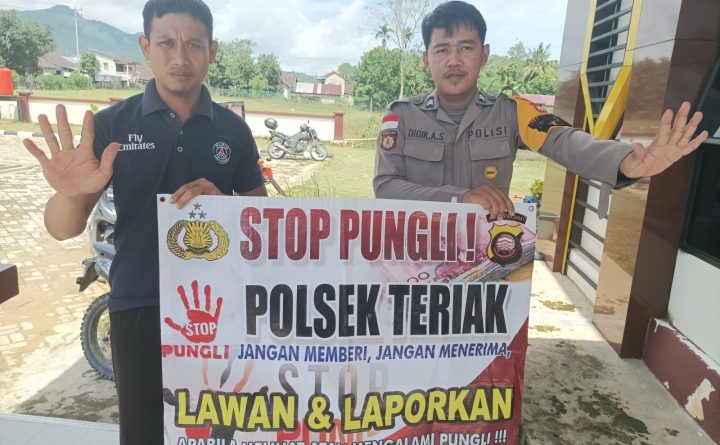 Polda Kalbar Polres Bengkayang Polsek Teriak, pada hari Minggutanggal (05/02/2023), telah dilaksanakan kegiatan Sambang Kamtibmas. Polsek Teriak Polres Bengkayang gencar melaksanakan sosialisasi tentang kegiatan sapu bersih pungutan liar (Saber pungli) Kepada Warga di Desa Sebente, Kec. Teriak Kab. Bengkayang. Sosialisasi saber pungli dengan menggunakan bener tersebut bertujuan agar masyarakat bisa memahami dan menghindari pungutan liar..