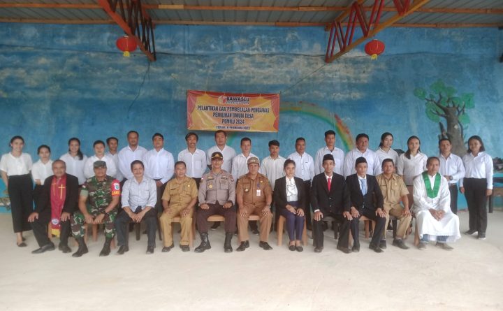 POLRES BENGKAYANG – Kapolsek Teriak, Polres Bengkayang Iptu Dwiyanto Bhanu Susilo S.I.P menghadiri Pelantikan dan pengambilan sumpah panitia pengawas pemilu kelurahan/Desa (PKD) Se-kecamatan Teriak bertempat di Danau Santai Desa Dharma Bakti Kec. Teriak. Senin (06/02/2023). Adapun yang hadir dalam Kegiatan tersebut Camat Teriak Dalawi S.Pd., M.Pd., Kapolsek Teriak Iptu Dwiyanto Bhanu Susilo S.I.P., Danramil 01/Bky..