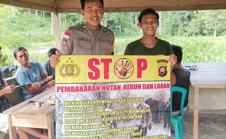 Polda Kalbar Polres Bengkayang Polsek Teriak. Bhabinkamtibmas Malo Jelayan, telah melaksanakan Sosialisasi dan himbauan tentang larangan dan sangsi hukum bagi pembakar hutan dan lahan di Desa binaan dengan menggunakan banner. Senin (13/02/2023).Hal ini di lakukan untuk menyadar kan masyarakat melalui himbauan berupa maklumat baik berupa banner, pamplet, agar masyarakat mengerti ttg hukuman dan sangsi bagi..