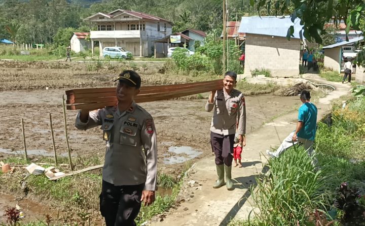 BENGKAYANG – Polsek Teriak Polres Bengkayang Polda Kalbar melaksanakan bakti sosial bedah rumah milik Bapak Sungguh, yang berlokasi di Dusun Pelaik Kandang RT.003 RW000, Desa Sebente, Kecamatan Teriak, Kabupaten Bengkayang, Kalimantan Barat, Jumat (02/12/2022). Bakti sosial berupa kegiatan gotong royong bedah rumah ini dipimpin langsung oleh Kadis PRKPPLH Sdr. Dodorius, Camat Teriak Sdr. Dalawi, Kapolsek..