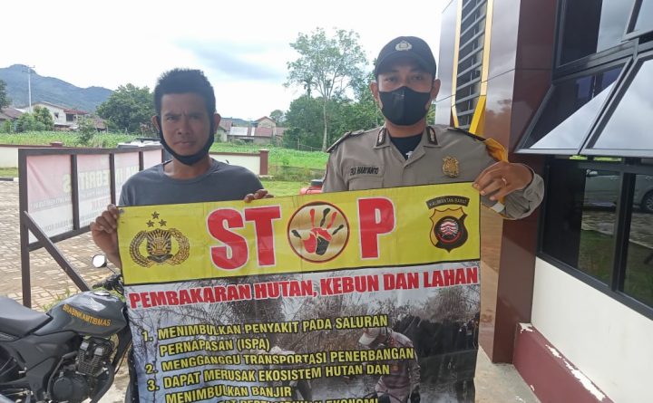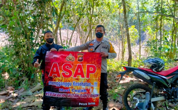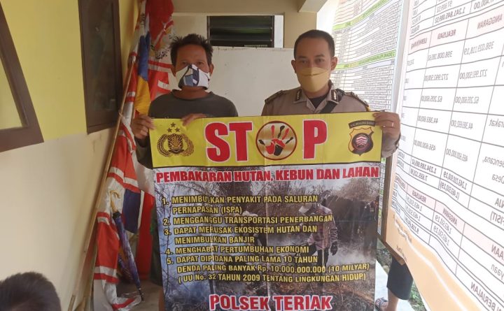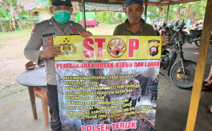 Sebagai upaya untuk mencegah terjadinya kebakaran hutan dan lahan (karhutla), Polsek Teriak Polres Bengkayang Polda Kalimantan Barat terus gencar melakukan sosialisasi karhutla kepada masyarakat. Selasa (30/08/2022). Seperti halnya yang dilakukan oleh Aipda Rendi yang sedang bersosialisasi kepada warga dengan menggunakan Banner yang bertuliskan Pelarangan pembakaran Hutan Dan Lahan STOP KARHUTLA. Saat ditemui Kapolsek Teriak Iptu..