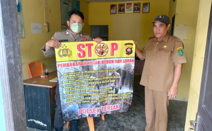 Polda kalbar, Polres Bengkayang, Polsek Teriak. Dengan adanya himbaun Pemerintah tentang bahaya karhutla maka kita patuhi bersama- sama agar tidak terdapat titik titik api di wilayah binaan. Bhabinkamtibmas yang bertugas di Desa Teriak Bripka Sanggra sebagai garda terdepan dan tidak henti hentinya memberikan pesan pesan kamtibmas dan menyampaikan himbuan baik melalui tapka, menggunakan banner dan..