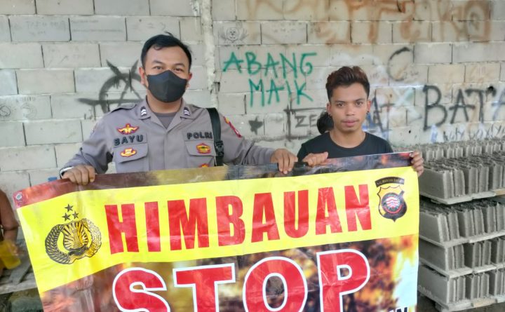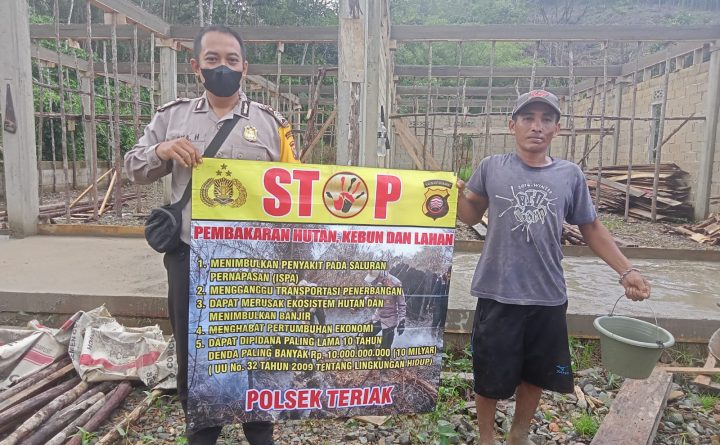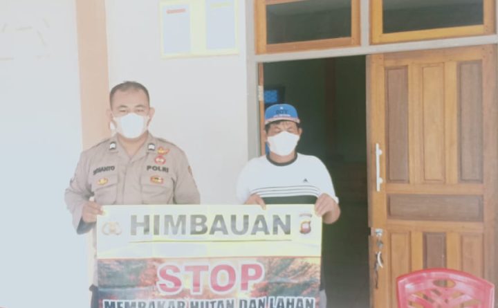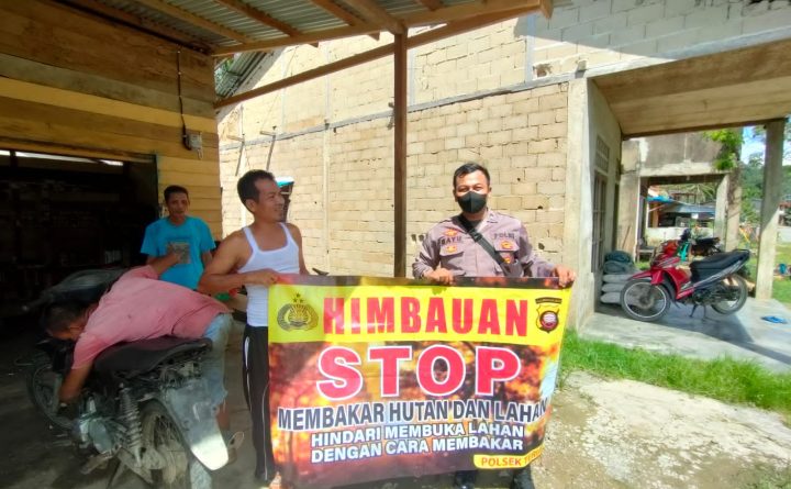 Polres Bengkayang – Bhabinkamtibmas Polsek Teriak Polres Bengkayang Polda Kalbar Bripka Inti melaksanakan kegiatan sambang ke desa Sumber Karya untuk mengkampanyekan Stop Karhutla dengan menggunakan alat peraga banner, Senin (18/07/2022). “Mengantisipasi penanggulangan Kebakaran Hutan dan Lahan (Karhutla) di wilayah Kecamatan Teriak terus dilakukan lewat himbauan dan sosialisasi tentang larangan membakar hutan dan lahan,” ungkap Bripka..
