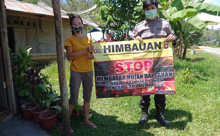 Polres Bengkayang – Personil Polsek Teriak Briptu Makarius Putra. B, laksanakan giat Edukasi warga untuk cegah kebakaran hutan dan lahan, Minggu (08/08/2021). Dalam giat ini personil polsek Teriak berupaya untuk memberikan edukasi kepada masyarakat yang tinggal di sekitar wilayah hukumnya untuk bersama-sama melakukan pencegahan terhadap kebakaran hutan dan lahan. Di jelaskan bahwa warga harus menghindari..