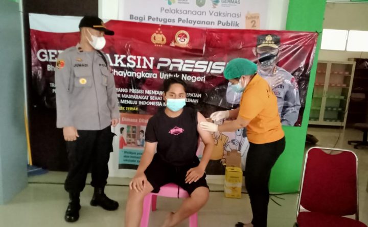 Polres Bengkayang – Kapolsek Teriak Ipda Jumadi.S.H., mengadakan giat Vaksinasi massal Covid – 19 Dosis ke 1 Kepada warga sekitar wilkum nya, Kamis (12/08/2021). Dalam rangka Bhakti Kesehatan Bhayangkara Untuk Negeri maka Kapolsek Teriak mengadakan kegiatan Vaksinasi massal Covid – 19 Dosis ke 1 Kepada warga sekitar. Vaksinasi ini di salurkan kepada warga secara gratis..