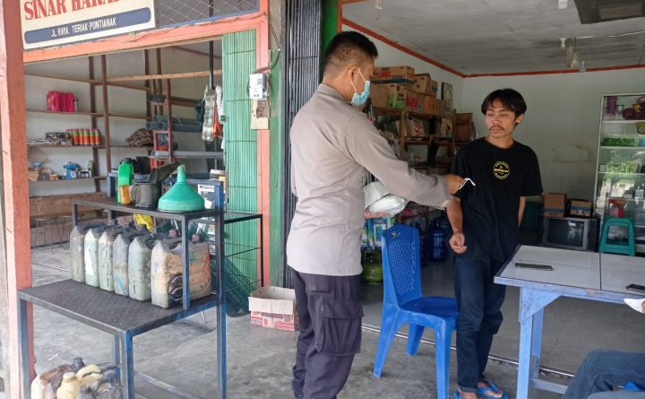 Polres Bengkayang – Kanit Sabhara polsek Teriak Aipda Eko. W, laksanakan giat patroli dan bagikan masker kepada warga, Selasa (28/09/2021). Pada pelaksanaannya kegiatan patroli yang di laksanakan oleh Kanit Sabhara Polsek Teriak ini dengan menyambangi warung dan rumah warga. Hal ini tentu saja bertujuan untuk memonitoring situasi keamanan sekitar wilayah hukumnya agar selalu dalam keadaan..