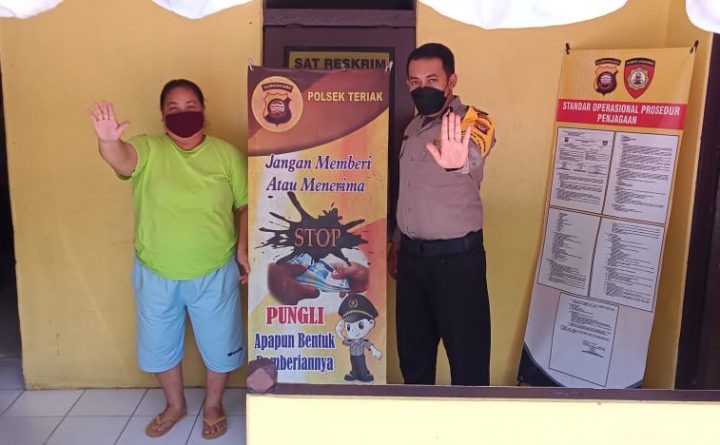 Polres Bengkayang – Personil polsek Teriak Bripka Eka. H berupaya mencegah pungutan liar melalui penyampaian imbauan, Kamis (1/7/2021). Bripka Eka. H selaku personil polsek Teriak melaksanakan giat penyampaian imbauan kepada warga sebagai upaya pencegahan terhadap praktek pungutan liar. Giat tersebut di laksanakan dengan memberikan penjelasan kepada warga bahwa pungutan liar merupakan perbuatan yang melanggar hukum…