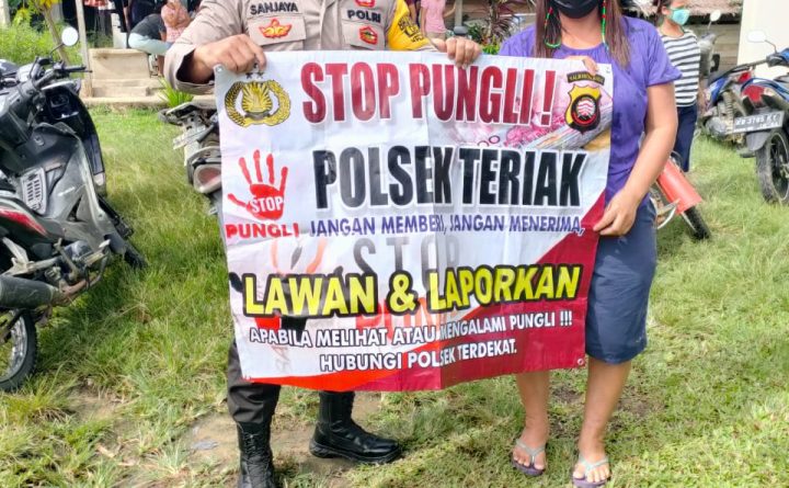 Polres Bengkayang – Personil polsek Teriak Bripka Sanggra Sanjaya berupaya mencegah pungutan liar melalui penyampaian imbauan, Minggu (4/7/2021). Bripka Sanggra Sanjaya selaku personil Polsek Teriak melaksanakan giat penyampaian imbauan kepada warga sebagai upaya pencegahan terhadap praktek pungutan liar. Giat tersebut di laksanakan dengan memberikan penjelasan kepada warga bahwa pungutan liar merupakan perbuatan yang melanggar hukum…