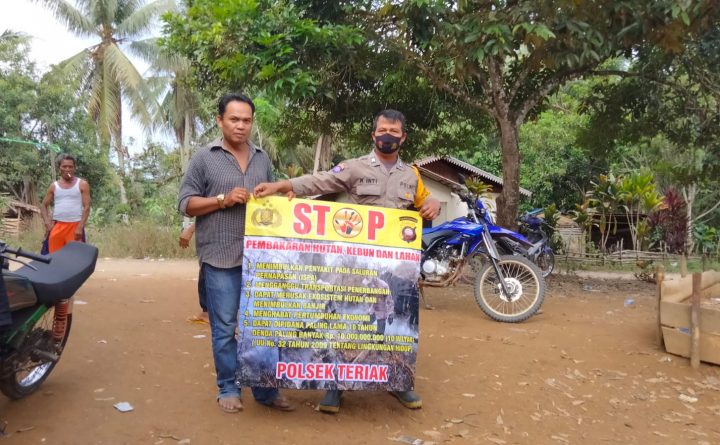 Polres Bengkayang – Bhabinkamtibmas Polsek Teriak Brigadir Inti menyampaikan himbauan kepada warga untuk mencegah kebakaran hutan dan lahan, Rabu (14/7/2021). Personil Polsek Teriak dalam giat ini menyampaikan himbauan agar masyarakat menjaga wilayah nya masing-masing saat memasuki musim kemarau ini. Hal ini di maksudkan agar seluruh wilayah Kecamatan Teriak dapat terhindar dari ancaman terjadinya kebakaran hutan..