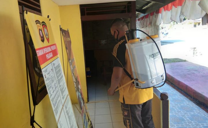 Polres Bengkayang – Personil polsek Teriak telah melakukan penyemprotan Disinfektan ke seluruh ruangan2 melaksanakan tugas pelayanan sehari2 di Mako Polsek Teriak demi menjamin kenyamanan dan sterilisasi ruangan dalam melayani masyarakat sehari- harinya. Selain itu personil Polsek Teriak sebelum melaksanakan pelayanan kepada masyarakat rutin melakukan pemeriksakan kesehatan tubuh selama masa pandemi saat ini, Minggu (18/07/2021). Melakukan..