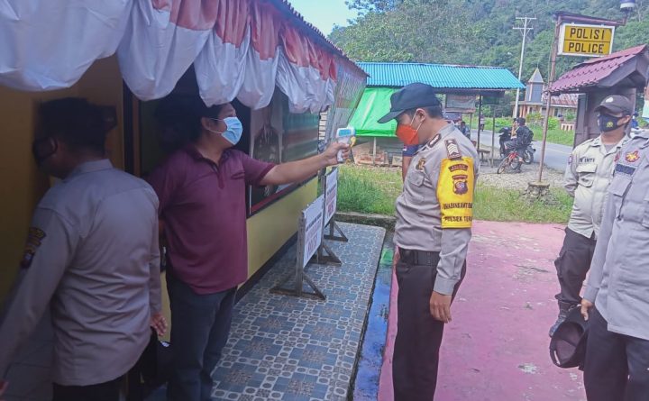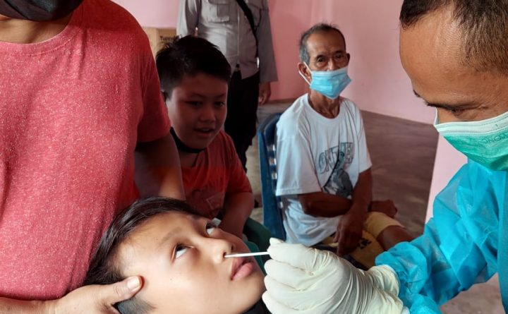 Polres Bengkayang – Kanit binmas polsek Teriak Aipda S. Saragih kawal pelaksanaan giat Tracing di desa Sekaruh dan Dharma Bhakti, Senin (21/06/2021). Aipda S. Saragih dalam hal ini melaksanakan pengawalan terhadap giat Tracing warga yang kontak erat kepada penderita virus Covid-19 di wilayah hukumnya. Giat Tracing ini di laksanakan dengan melakukan pengecekan kesehatan berupa tes..
