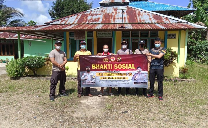 Polres Bengkayang – Kapolsek Teriak Jumadi. S.H., dan anggotanya laksanakan giat bakti sosial di wilayah hukumnya, Selasa (22/06/2021). Dalam giat ini Kapolsek Teriak memimpin langsung kepada anggotanya dalam pelaksanaan giat bakti sosial yang di wilayah hukumnya tersebut. Adanya kegiatan bakti sosial ini di laksanakan untuk menanggapi perayaan hari ulang tahun Bhayangkara yang ke-75 pada tanggal..