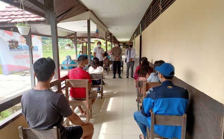 Polres Bengkayang – Kapolsek Teriak Ipda Jumadi. S.H., bersama Kepala Puskesmas Teriak Sdr. S. Rinto Amd.GZ, sampaikan sosialisasi manfaat vaksin Kamis (24/06/2021). Pada kegiatan ini Kapolsek Teriak bersama Kepala Puskesmas Teriak melaksanakan penyampaian sosialisasi terkait manfaat vaksin kepada warga. Hal ini di laksanakan untuk mengedukasi warga agar menjadi paham terkait manfaat dari penyuntikan vaksin selama..