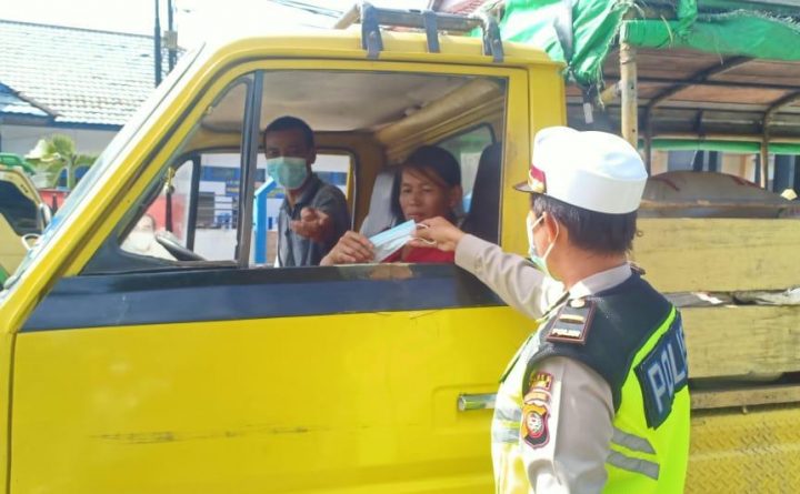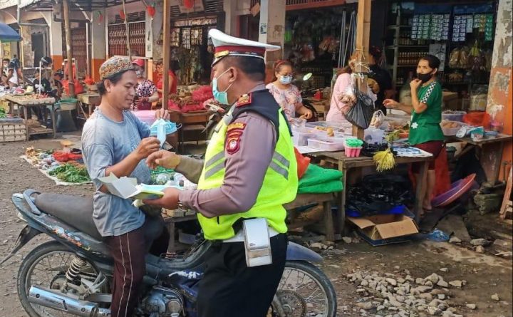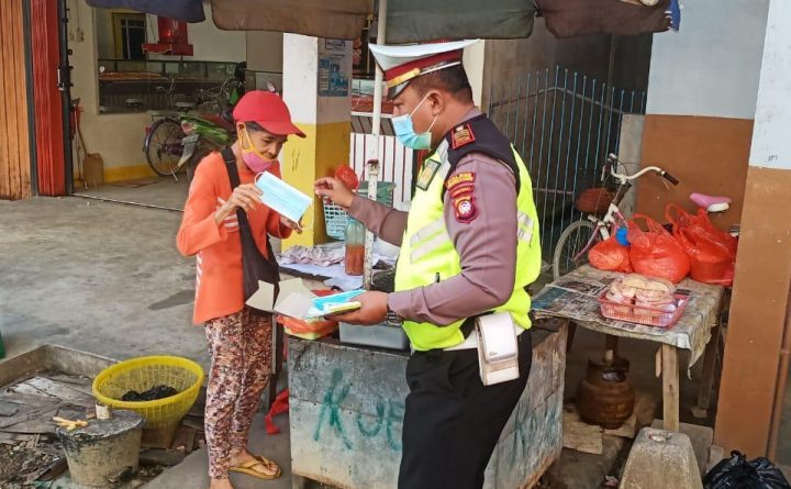 Bengkayang- Salah satu kegiatan Kasat Lantas Polres Bengkayang dan anggota dalam rangka Pencegahan penyebaran Covid 19 bagi masyarakat Bengkayang yaitu melakukan Pembagian masker gratis kepada masyarakat yang tidak menggunakan masker di Pasar Bengkayang. “Kegiatan kita pagi ini, yakni memberikan edukasi protokol kesehatan Covid 19 sesuai anjuran pemerintah dan pembagian masker kepada masyarakat dan anak anak..