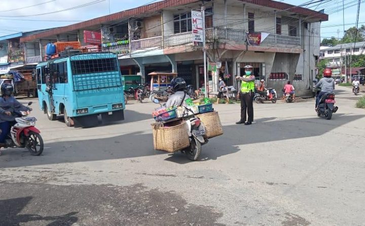 Bengkayang- Anggota Satuan Lalu Lintas Polres Bengkayang melaksanakan pengaturan lalu lintas untuk mencegah kepadatan kendaraan dan cegah terjadinya kecelakan lalu lintas di jalan raya merupakan tugas pokok yang tidak lepas dari kepolisian, Kamis (01/07/2021) Pagi. Bripka Gedion dan Briptu Jemmi melaksanakan pengaturan lalu lintas di jalan Jerendeng AR Bengkayang tepatnya di simpang laut kidul Bengkayang..