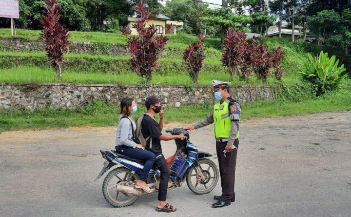 Bengkayang – Salah satu wujud peduli Keselamatan oleh Kanit Laka Lantas Polres Bengkayang dalam menciptakan keamanan, keselamatan dan ketertiban berlalu lintas kepada pengendara sepeda motor yang tidak gunakan Helm SNI di jalan Perwira Bengkayang, Selasa (15/06/2021). Dengan sangat ramah dan humanis Kanit Laka Lantas Polres Bengkayang Iptu harto simanjuntak memberikan pengetahuan tentang tertib berlalu-lintas dan..