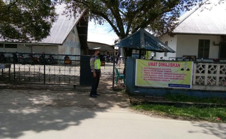 Polres Bengkayang – Guna terciptanya rasa aman dan nyaman saat ibadah Misa dalam rangka paskah, Personil Satlantas Polres Bengkayang laksanakan pengamanan Gereja di Gereja Santo Pius X Bengkayang, Minggu (30/05/2021) pagi. Kegiatan dilaksanakan secara rutin oleh Personil Satlantas Polres Bengkayang, setiap kegiatan masyarakat baik kegiatan Keagamaan maupun kegiatan lainya di Gereja gereja di wilayah Bengkayang..