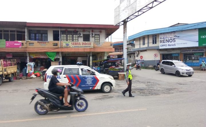Bengkayang – Kegiatan rutin Personil Satlantas Polres Bengkayang dalam rangka menciptakan keamanan, keselamatan, ketertiban dan kelancaran berlalu lintas bagi masyarakat yang melaksanakan aktifitas setiap hari dari segala ancaman dan gangguan, melaksanakan kegiatan Patroli Lantas dan gatur lantas guna ciptakan rasa aman, nyaman dan cegah kepadatan kendaraan serta himbau masyarakat patuhi peraturan lalu lintas di wilayah..