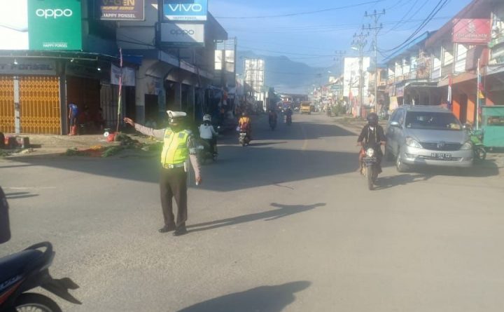 Bengkayang- Personil Satuan Lalu Lintas Polres Bengkayang melaksanakan pengaturan lalu lintas untuk ciptakan rasa aman dan nyaman pengguna jalan dalam beraktivitas serta cegah terjadinya kecelakan lalu lintas di jalan raya merupakan tugas pokok yang tidak lepas dari kepolisian, Jum’at (27/08/2021) Pagi. Bripka Ahjanu dan Brigadir Yeyeh melaksanakan pengaturan lalu lintas di jalan Jerendeng AR Bengkayang..