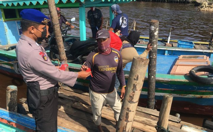 Sat Polair Polres Bengkayang tidak bosan untuk sampaikan Imbauan tentang pencegahan Virus Corona atau Covid di-19 di Dermaga Penyeberangan Umum antar Pulau Dsn. Teluk Suak Desa Karimunting Kecamatan Sungai Raya Kepulauan Kabupaten Bengkayang, Selasa (05/10/2021) pukul 08.30 Wib. Personil Satpolair Polres Bengkayang Brigadir Sakalillah memberikan Imbauan kepada masyarakat yang tidak menggunakan masker untuk mematuhi segala..