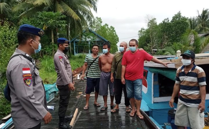 Satpolairud Polres Bengkayang Patroli sambang di Daerah Dusun Kuala Desa Sungai Raya, imbau nelayan yang sedang bersantai pulang melaut untuk selalu patuhi protokol kesehatan, Jumat (1/10/2021). Kegiatan ini dilaksanakan oleh Anggota Satpolairud Polres Bengkayang Bripka Herman dan Brigpol Sakalillah dengan memberikan imbauan kepada nelayan yang sedang bersantai dalam rangka pencegahan penyebaran Corona Virus (Covid-19) dan..