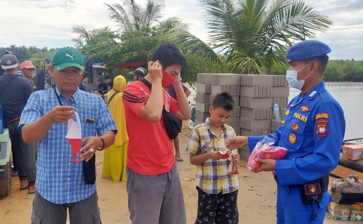 Kegiatan pembagian masker untuk masyarakat pesisir ini dilakukan oleh personel Satpolairud Polres Bengkayang untuk menekan penyebaran virus covid-19 di wilayah pesisir Kabupaten Bengkayang, di Kawasan Dermaga Penyebrangan Teluk Suak Jumat 20 Agustus 2021, Selain membagikan masker Personel juga menyampaikan himbauan untuk selalu melaksanakan protokol kesehatan 5M, dengan wajib memakai masker, mencuci tangan, menjaga jarak, mengurangi..