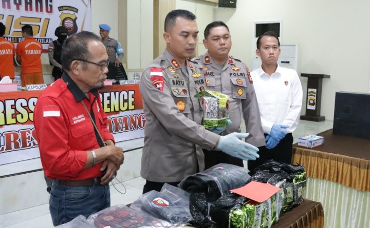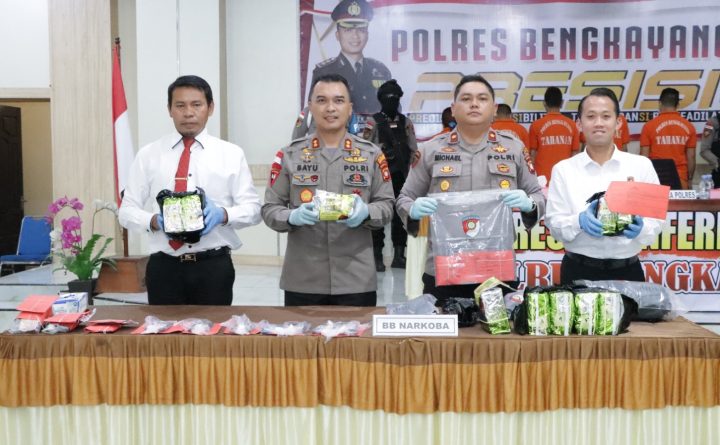 Bengkayang, Kalbar – Kepolisian Resor Bengkayang kembali berhasil mengungkap kasus penyalahgunaan narkoba jenis sabu dengan berat 10.452,93 Gram. Saat dikonfirmasi, Kapolres Bengkayang AKBP Dr. Bayu Suseno, S.H., S.I.K., M.M., M.H., mengungkapkan, bahwa pihaknya telah mengamankan lima orang tersangka dengan masing-masing berinsial L (25), G alias Ale (25), YP alias Yoges (29), DA alias Kubuat (25)..