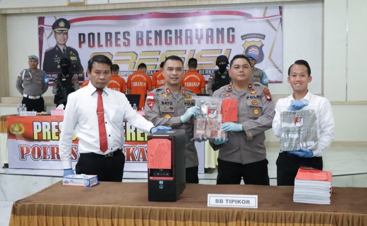 Bengkayang, Kalbar – Kepolisian Resor Bengkayang Polda Kalbar menggelar Konferensi Pers terkait pengungkapan kasus tindak pidana korupsi, bertempat di Halaman Mapolres Bengkayang, Selasa (28/2/2023) pagi. Kegiatan tersebut dipimpin langsung oleh Kapolres Bengkayang AKBP Dr. Bayu Suseno, S.H., S.I.K., M.M., M.H., dengan didampingi Pju Polres Bengkayang serta dihadiri sejumlah awak media elektronik, media cetak maupun media..