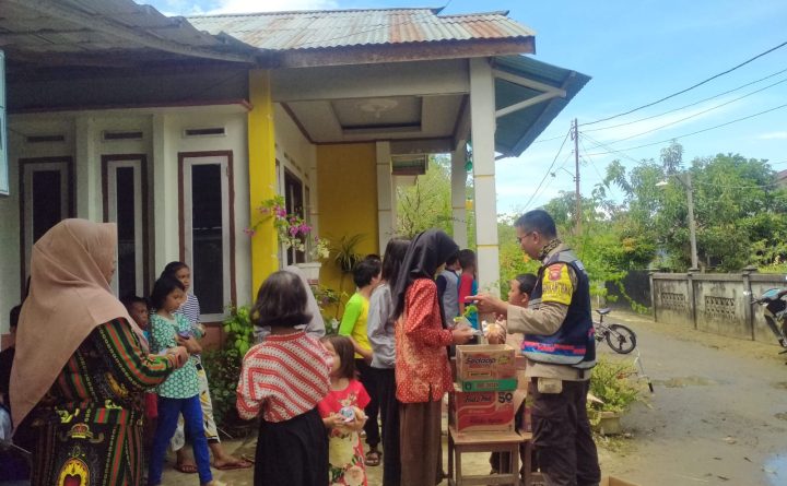 Singkawang_, Polsek Singkawang Tengah Bhabinkamtibmas Polsek Singkawang TENGAH Polres Singkawang yang bertugas di Kelurahan Sekip Lama Brigpol Andi Chatibi, S.IP bersama ketua RT.005 Rw.002 Kel. Sekip Lama melaksanakan kegiatan bagikan Donat dan Minuman dari Donatur program aksi berbagi keceriaan untuk anak-anak di Jl. Hansip GG. Pendidikan 2 RT. 005 RW. 002 Kelurahan Sekip Lama, Kecamatan Singkawang Tengah,..