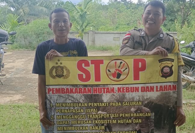 Sebagai upaya untuk mencegah terjadinya kebakaran hutan dan lahan (karhutla), Polsek Teriak Polres Bengkayang Polda Kalimantan Barat terus gencar melakukan sosialisasi karhutla kepada masyarakat. Senin (16/05/2023). Seperti halnya yang dilakukan oleh Bripka Deli yang sedang bersosialisasi kepada warga dengan menggunakan Banner yang bertuliskan Pelarangan pembakaran Hutan Dan Lahan STOP KARHUTLA. Saat ditemui Kapolsek Teriak Iptu..