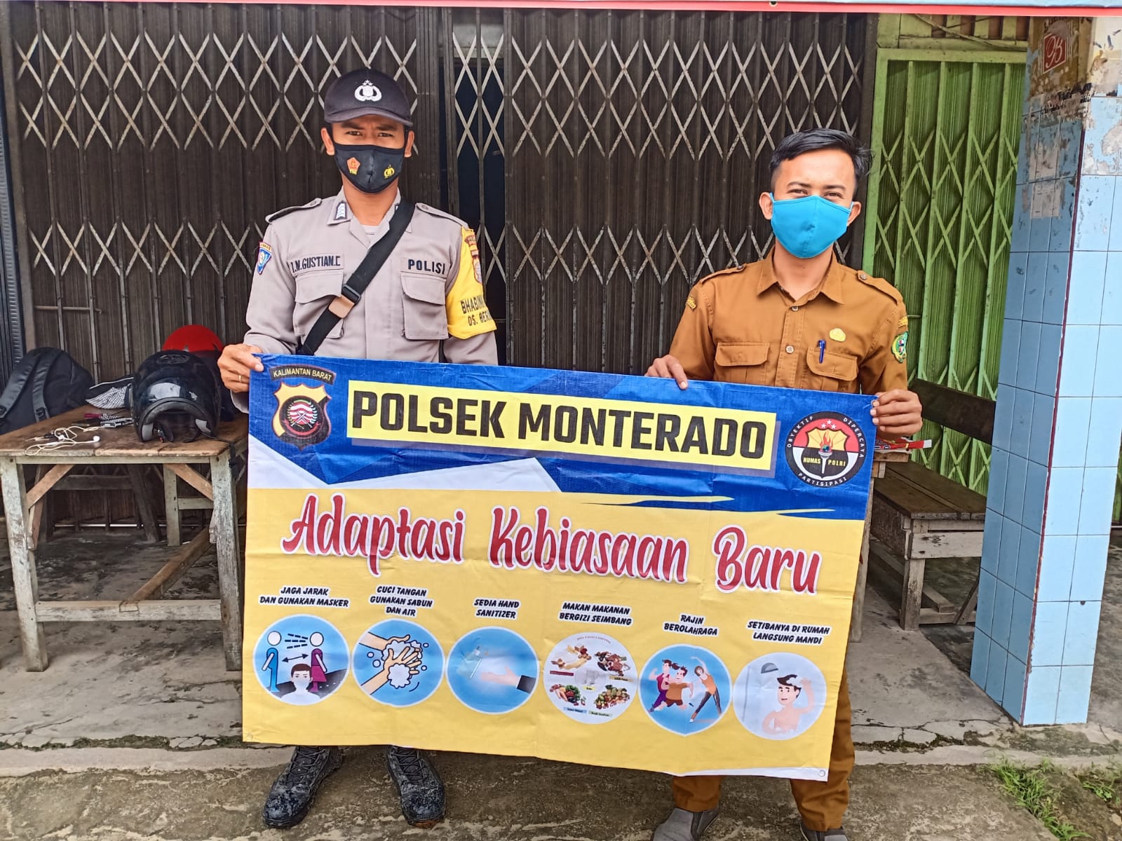 Dalam Rangka pencegahan penularan Covid19 di Wilayah Hukum, Kapolsek Monterado Polres Bengkayang Polda Kalbar IPDA Mulyadi Jaya terus menggerakkan para personelnya untuk menghimbau masyarakat Kecamatan Monterado untuk tetap menerapkan protokol kesehatan 5M.