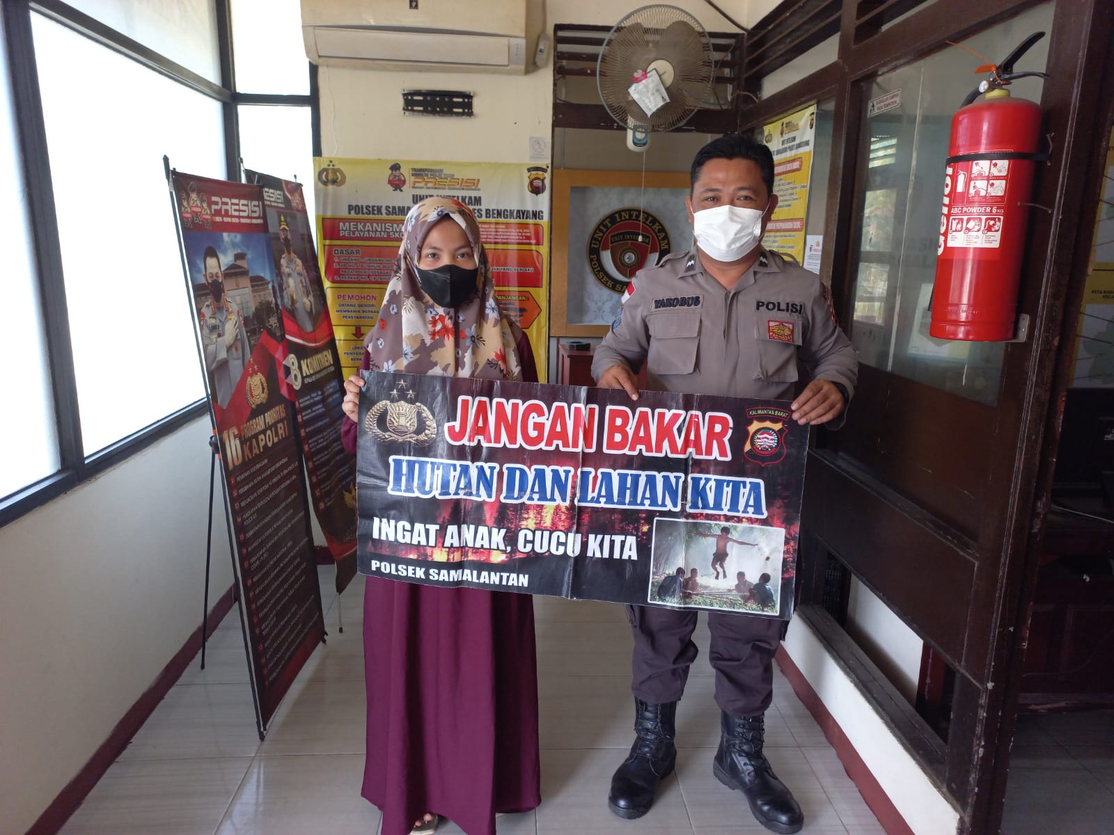 Polda Kalbar – Polres Bengkayang – Polsek Samalantan. Antisipasi kebakaran hutan dan lahan, jajaran Polsek Samalantan Polres Bengkayang Polda Kalbar sosialisasikan kejahatan lingkungan dengan larangan membakar hutan maupun lahan langsung kemasyarakat.