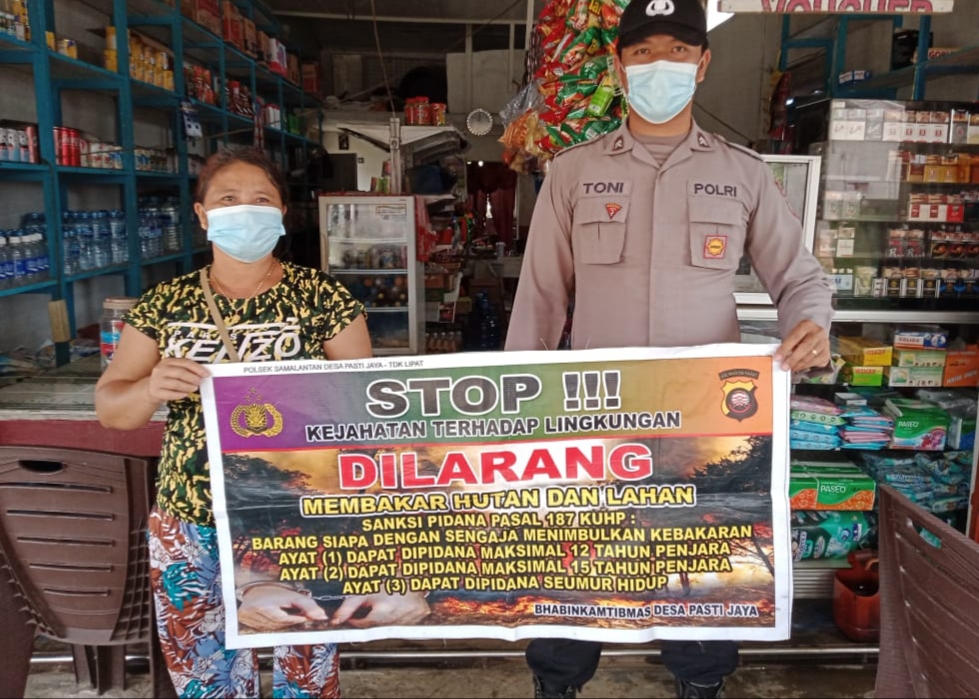 Seperti yang dilakukan Anggota Polsek Samalantan, Briptu Toni Satria pada Rabu tanggal 16 Maret 2022 pagi, menyosialisasikan serta ajakan untuk tidak melakukan pembakaran hutan maupun lahan.