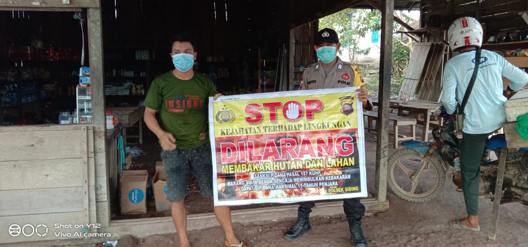 Anggota Bhabinkamtibmas Polsek Siding Bripka Bartolomeus dalam Pelaksanaan Kegiatan Cegah Karhutla di Wilkumnya menyampaikan bahwa dalam rangka antisipasi Kebakaran hutan dan lahan Polsek Siding secara rutin akan terus-menerus melakukan Patroli sosialisasi dan edukasi kepada masyarakat dan pemetaan daerah – daerah rawan terjadinya kebakaran hutan dan lahan dengan Harapan Wilkum Polsek Siding Bebas Dari Kebakaran hutan dan lahan.