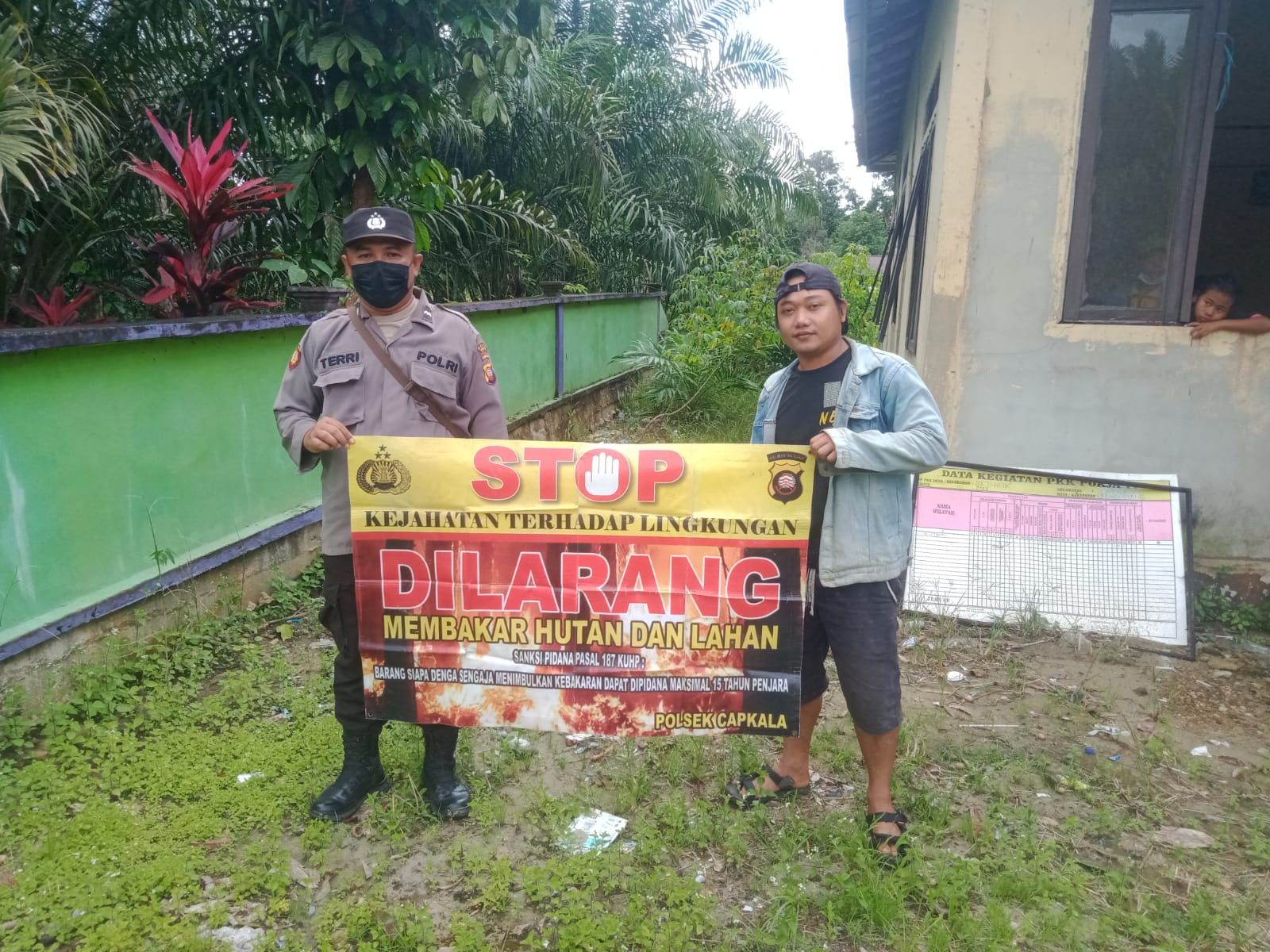 Kapolsek Capkala IPDA HASAN ABDULLAH, S.H., M.H. melalui Bhabinkamtibmas Desa Capkala mengatakan bahwa langkah Polsek Capkala ini merupakan upaya dalam mendukung pemerintah untuk mengantisipasi terjadinya kebakaran hutan dan lahan.