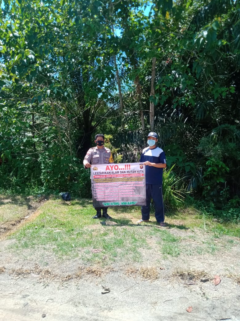 Upaya mencegah terjadinya kebakaran hutan atau lahan (karhutla) terus dilakukan oleh Bhabinkamtibmas Polsek Ledo dengan memberikan imbauan serta sosialisasikan stop karhutla dengan menggunakan banner kepada warga Desa Semangat, Kecamatan Ledo Kabupaten Bengkayang, Rabu (28/07/2021).