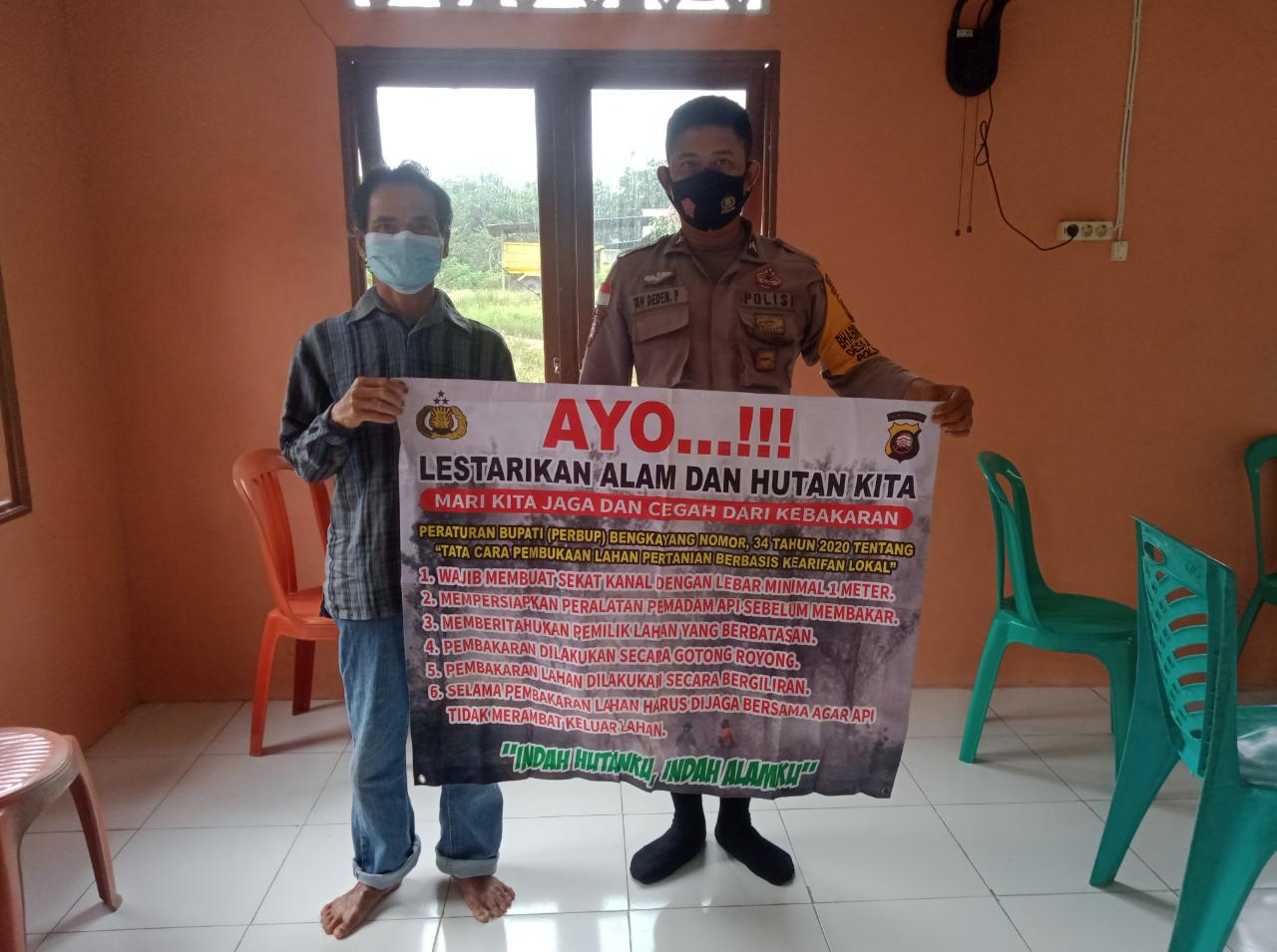 “Kami mensosialisasikan pencegahan karhutla yang berisikan larangan dan sanksi pidana bagi pelaku pembakaran hutan dan lahan kepada masyarakat agar diimplementasikan dan diketahui,” terang IPDA M. Rokhim, SH.