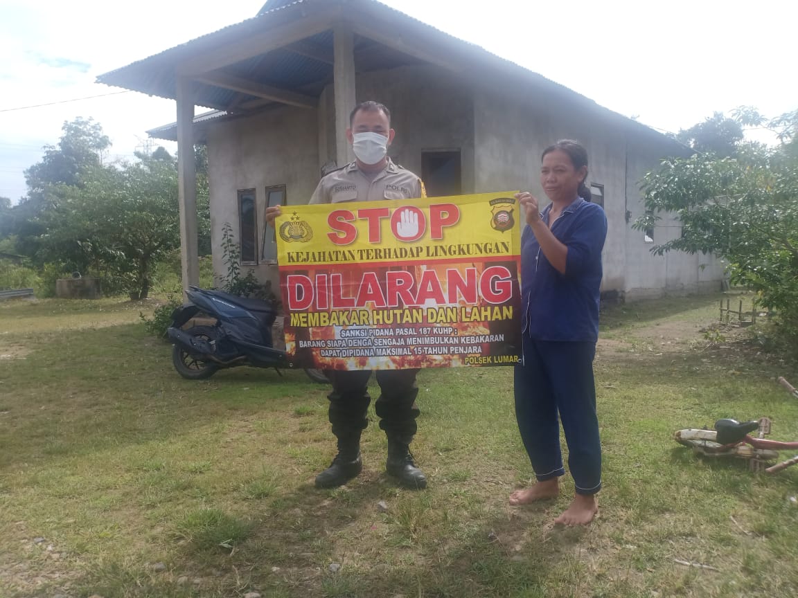 Polsek Lumar Sebagai upaya pencegahan terjadinya kebakaran hutan dan lahan (karhutla) terus dilakukan oleh Personel Polres Bengkayang jajaran Polsek Lumar khususnya yang dilakukan oleh Bhabinkamtibmas Polsek Lumar dengan memberikan imbauan serta sosialisasikan stop karhutla dengan menggunakan banner kepada warga Masyarakat Binaannya.