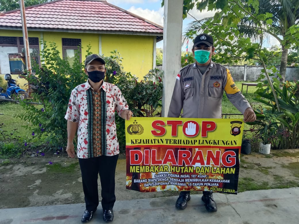Personel Polsek Lumar & Bhabinkamtibmas Polsek Lumar selalu mengajak warga masyarakatnya agar bersama sama menjaga lingkungan sekitar dari bahaya karhutla dan tidak lupa juga memberikan sosialisasi tentang dampak dan bahaya membakar hutan dan lahan, serta sangsi pidana membakar hutan dan lahan.