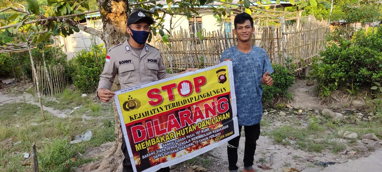 Anggota Polsek Siding Bripka Boni Setiawan dalam Pelaksanaan Kegiatan Cegah Karhutla di Wilkumnya menyampaikan bahwa dalam rangka antisipasi Kebakaran hutan dan lahan Polsek Siding secara rutin akan terus-menerus melakukan Patroli sosialisasi dan edukasi kepada masyarakat dan pemetaan daerah – daerah rawan terjadinya kebakaran hutan dan lahan dengan Harapan Wilkum Polsek Siding Bebas Dari Kebakaran hutan dan lahan.